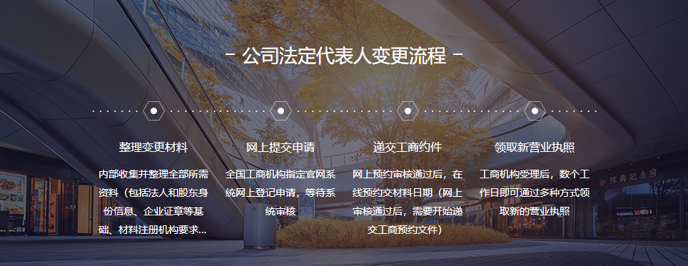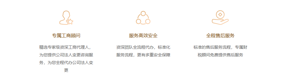 时效承诺:材料齐全后3-5个工作日内完成工商及税务法人同步变更。